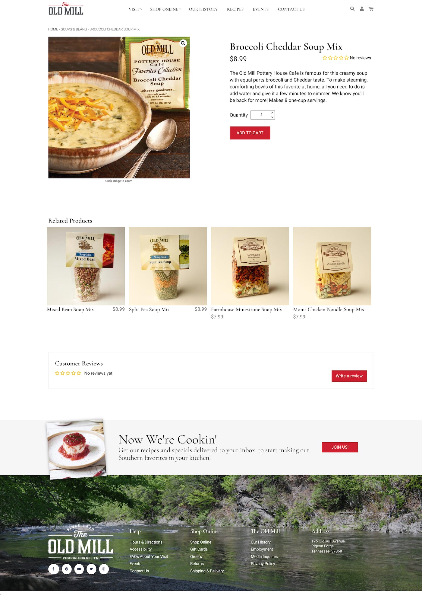 Nestled in the Smoky Mountains, The Old Mill provides an unforgettable travel experience for visitors young and old. Customers leave with memories of The Old Mill and wishes to keep their travel memories alive with products from The Old Mill available anytime, anywhere.We teamed up with the folks at New Tricks Web Design to launch a Shopify Plus store for The Old Mill with a custom-built theme, so customers can be directly connected with the products they hold near and dear to their hearts. We created an experience that's easy to navigate whether on your computer in the comfort of your home or on your phone in the mountains, making it easy to find the products customers love, whether they're purchasing for themselves or as gifts for loved ones.